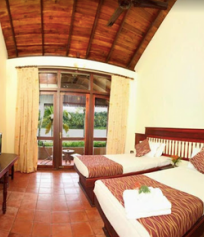 The rooms at Fragrant Nature Kollam blend modern luxury with traditional Kerala charm, offering breathtaking views of the serene Lake Ashtamudi. Each room is elegantly designed with natural materials and warm tones, creating a peaceful and welcoming atmosphere. With private balconies or terraces, guests can relax and soak in the tranquil surroundings. The rooms come equipped with premium